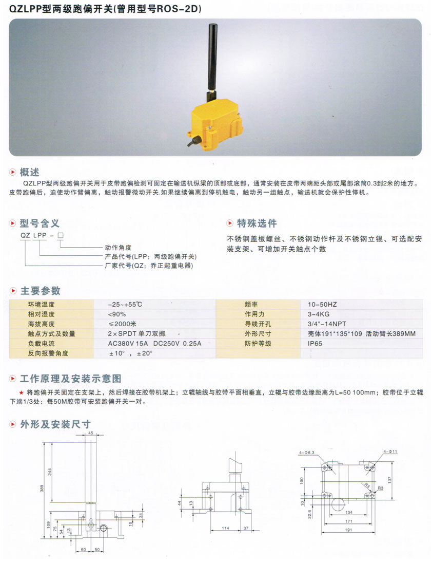 當(dāng)前位置:主頁 > 產(chǎn)品中心 > 輸送帶保護(hù)系列 > QZLPP型兩級(jí)跑偏開關(guān)