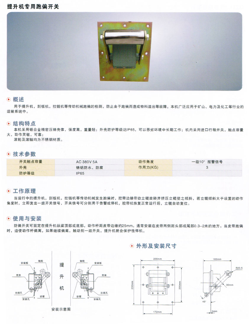 當(dāng)前位置:主頁(yè) > 產(chǎn)品中心 > 輸送帶保護(hù)系列 > 提升機(jī)專用跑偏開(kāi)關(guān)